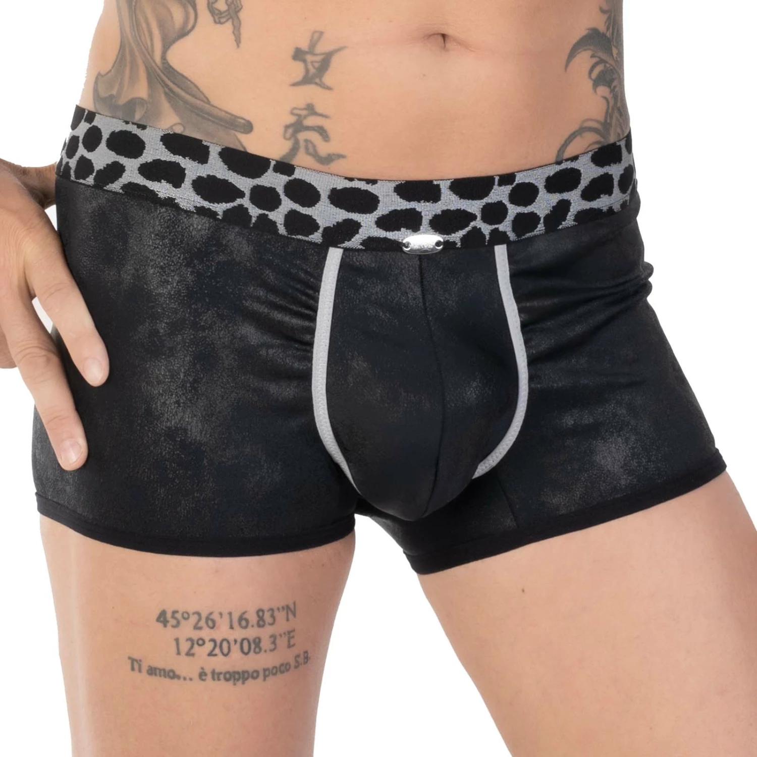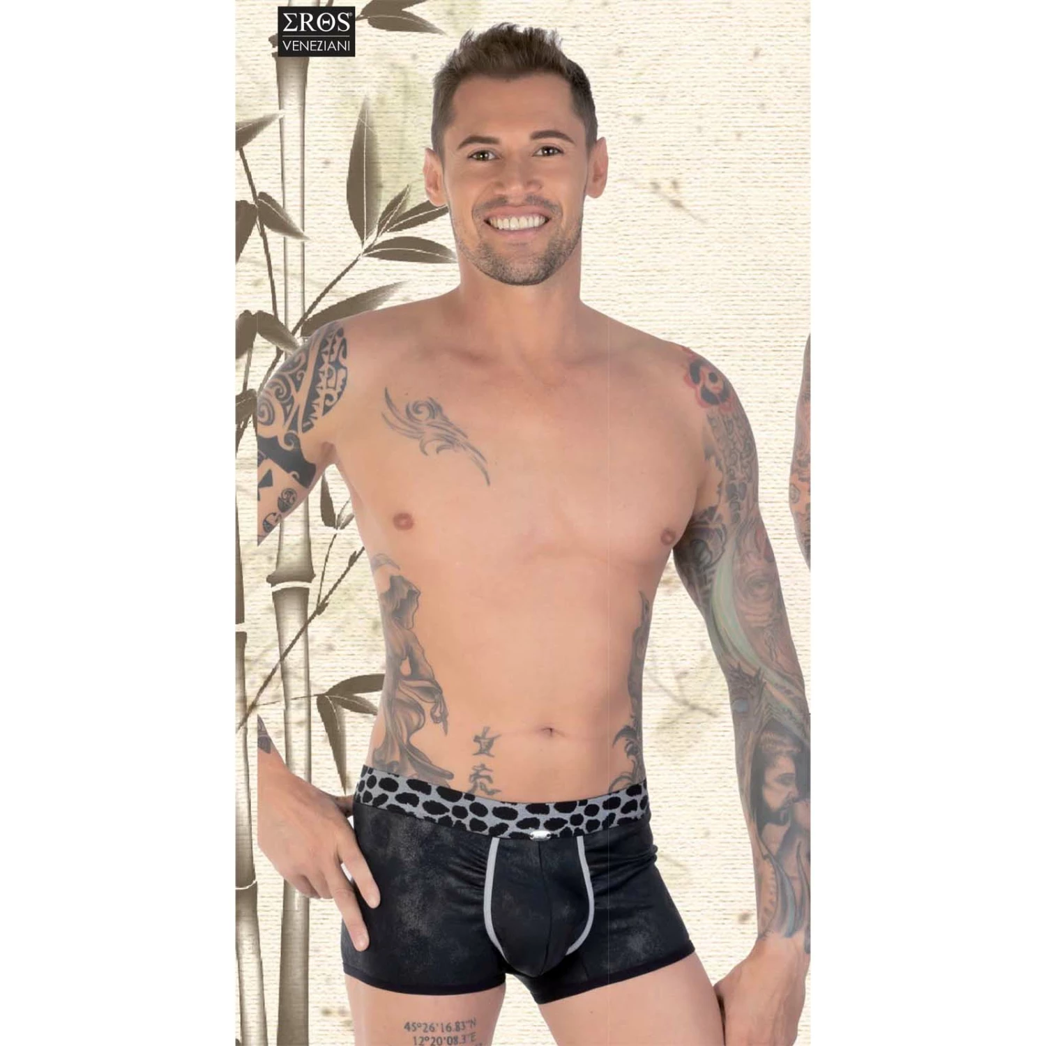 Boxer Eros Veneziani 7426. Boxer Push Up très sexy et léger. Très agréable à porter. Idéal pour vos soirées. Ceinture imprimée leopard. 82% Polyamide, 18% Elasthanne.