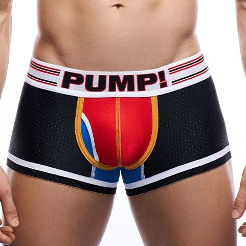 Boxer Pump! Circuit 11103. Boxer taille basse très doux et confortable. Poche frontale doublée et en tissu mesh. Ceinture élastique large logotée PUMP!. Un mélange de couleurs qui s’accordent parfaitement. Maintien optimal pour être porté tout au long de la journée. Bordures de couleur contrastée. 72% Coton, 18% Nylon, 10% Elasthanne.