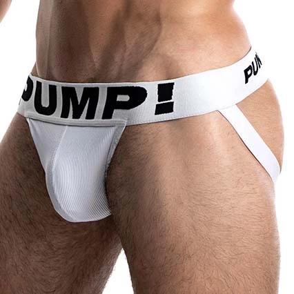 Jock Strap Pump! White 15005. Jock Strap très doux et confortable. Poche frontale doublée. Ceinture élastique large logotée PUMP!. Maintien optimal pour être porté tout au long de la journée. 94% Coton, 6% Elasthanne.