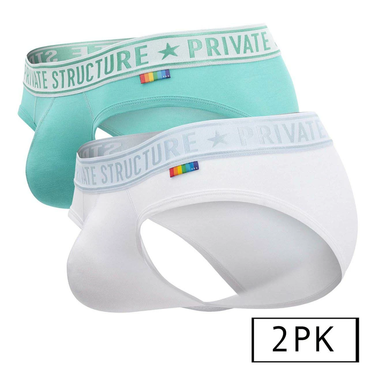 Pack de 2 slips Private Structure Pride EPUT4385. Les mini slips sont fabriqués à partir d’un tissu en microfibre super doux et extensible. Taille basse et coupe ajustée ils offrent une grande couverture avec une touche sexy. 95% Coton, 5% Elasthanne.