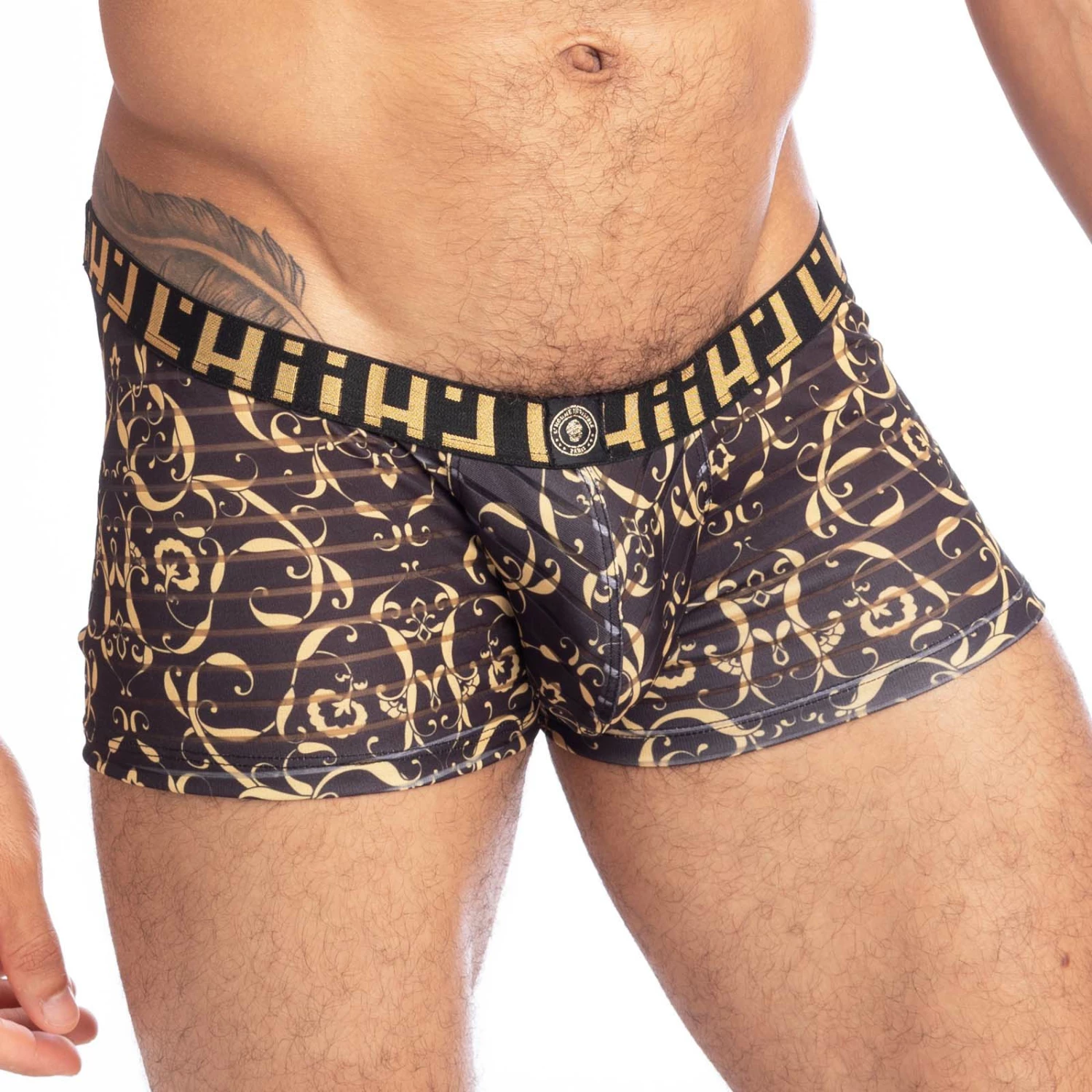 Shorty L Homme Invisible Oppulence dOro MY39ORO. Découvrez le charme irrésistible de ce Shorty Push up . Très belle matière aux rayures transparentes imprimées de motifs ornés baroque. Ergonomique et confortable ce Boxer vous rendra encore plus sexy. Ce Boxer est doté d un confort exceptionnel et d un style séducteur. Poche avant qui procure un effet avantageux soulevant légèrement votre intimité masculine et assurant un excellent maintien grâce à son effet push up. Minimum de couture à larrière pour un effet seconde peau. Ceinture élastique. Une somptueuse collection alliant confort et sensualité pour être romantique plus que jamais. 10% Polyamide, 80% Polyester, 10% Elasthanne.