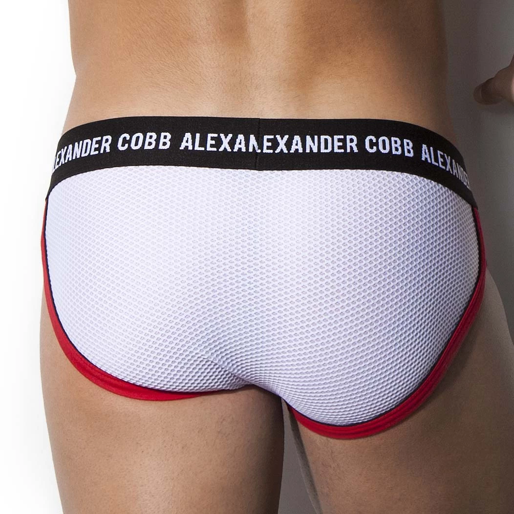 Slip Alexander COBB 10CS04. Slip blanc mesh avec une ceinture elastique noire logotée au nom de la marque. Un accord parfait. Ce slip vous donnera limpression de ne rien porter, il donne la sensation dune seconde peau. Coupe ajustée. Poche ultra confortable. Bordures de couleur contrastée. 83% Polyamide, 17% Elasthanne.