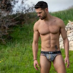 Slip ES Collection Wild Print UN328. Découvrez ce Slip taille basse qui est très confortable. Poche Push up. Une ceinture logotée au nom de la marque. Un Slip discret sous vos vêtements et à la pointe de la mode masculine ! Imprimés sauvages . 50% Polyamide, 40% Polyamide, 10% Elasthanne.
