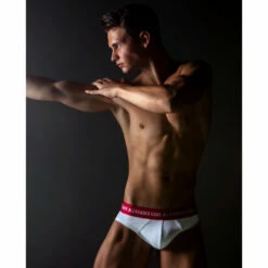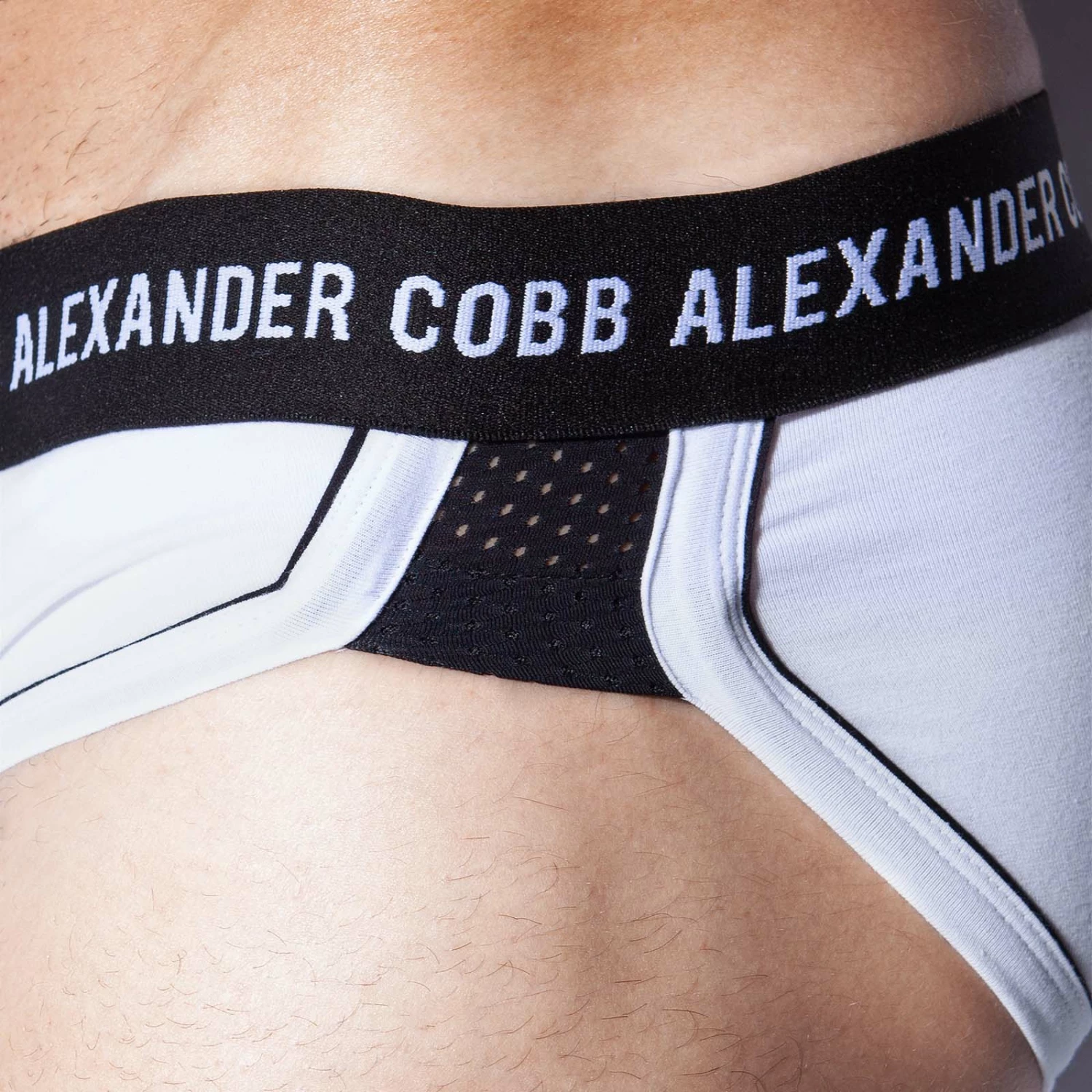 Slip Gambie Alexander COBB 8CS05. Slip uni blanc avec une ceinture elastique noire logotée au nom de la marque. Un accord parfait. Ce slip vous donnera limpression de ne rien porter, il donne la sensation dune seconde peau. Coupe ajustée. Poche ergonomique, ultra confortable. 92% Coton, 8% Elasthanne.