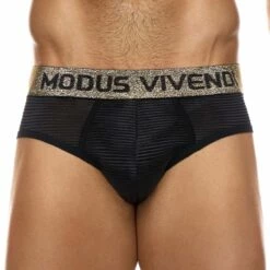Slip Modus Vivendi Exclusive Festive 22214. En édition limitée, découvrez ce slip avec une large ceinture scintillante logotée Modus Vivendi. Sous vêtement scintillant pour des fêtes joyeuses. 85% Polyester, 15% Lurex.