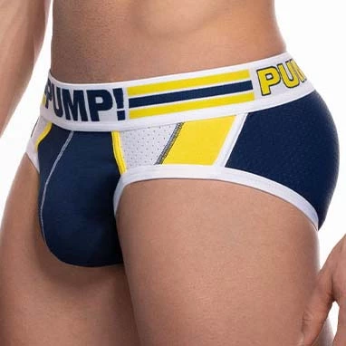 Slip Pump! Recharge 12060. Slip très doux et confortable. Poche frontale doublée et bordures contrastées jaunes. Ceinture élastique large logotée PUMP!. Un mélange de couleurs qui saccordent parfaitement. Maintien optimal pour être porté tout au long de la journée. Matière mesh à larrière et à lavant. 42% Nylon, 43% Coton, 15% Elasthanne.